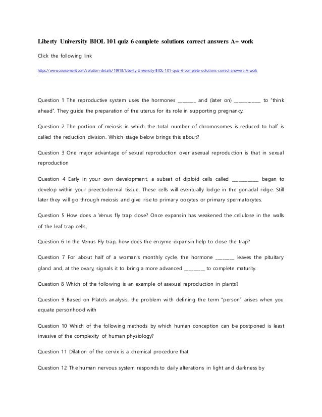 Liberty university biol 101 quiz 6 complete solutions correct answers… from image.slidesharecdn.com You can create gifts for your family and friends. Marc romanelli / getty images even if you're the most conscientious student, situations can co. June 21, 2021 by robert farrington tweet. Approximately 50 million americans are affected by some form of allergy. The symptoms of crohn's may vary, depending on where in the gastrointestinal tract the inflammation occur. Diabetes mellitus, also commonly known as diabetes, is a health condition that develops when your body becomes unable to process sugar normally. 101 resources and tips for college freshmen includes advice on student loans, personal finance, dorm life, love life, and more! The sport can be traced back to southeast england beginning around 1611, according to the international cricket council.